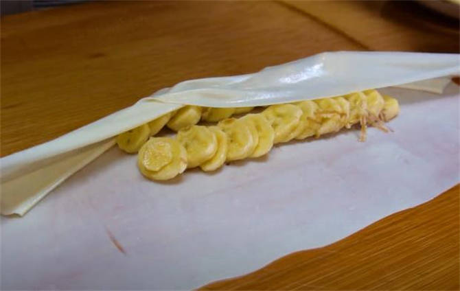6.排上香蕉片。