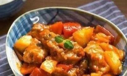 酸甜排骨食材:帶肉排骨500克,調料:植物油500克,鹽1/2茶匙,玉米淀粉3大匙2茶匙,白砂糖1大匙,陳醋2茶匙,蕃茄醬2大匙,水3大匙