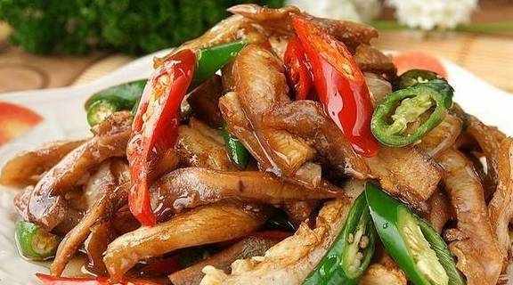 3、鍋裡倒油,把紅椒倒進去炸一遍(我比較喜歡吃軟軟的甜椒~),然後再把鱔魚倒進去炸幹水分。