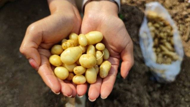 小洋芋大的隻有核桃大小,小一點的隻有拇指頭大,形狀橢圓,看上去就像一顆顆小巧玲瓏的珍珠,所以當地人也叫它珍珠洋芋。
