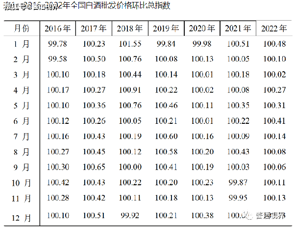 4月23日,瀘州·中國白酒商品批發指數辦公室發佈《2022年中國白酒價格運行報告》,報告顯示,白酒近年的漲價行情正在減速,2022年全國白酒批發價格總指數漲而不強,增速創下近五年新低。 報告建議,企業要積極推動數字化轉型為行業發展增添新動力,以新產品、新營銷、新場景吸引和培育年輕消費群體。 發力酒旅融合,做強工業旅遊,加入國際市場競爭。 要打造產區名片,發揮集群效應,以新思路破解行業天花板。 對齊“雙碳”目標,推動行業綠色發展成為新機遇。