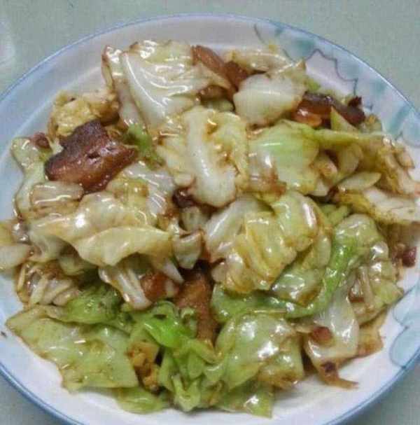 5,包菜炒肉。材料:五花肉,蒜米,包菜,生薑,幹辣椒,雞精,生抽,蠔油,料酒。做法:五花肉洗凈切成薄片,包菜手撕成小片,包菜梗不要,生薑切成薑末,蒜米切成蒜蓉,鍋裡放入油放入五花肉炒出油,再放薑末,蒜蓉,幹辣椒一起炒出香味,放一點料酒炒一下,放入包菜大火翻炒到變軟,如果鍋裡太幹放入一點點水,調味放生抽,蠔油,雞精一起翻炒均勻就可以出鍋瞭。