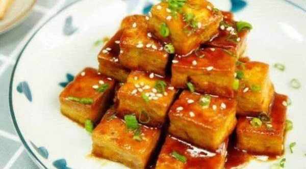3,脆皮豆腐。材料:豆腐、鹽、芝麻、蔥花、陳醋,白糖,番茄醬,油。做法:豆腐改刀切成1厘米的厚片,水中加入鹽放在水中浸泡15分鐘。撈出來控幹水分,鍋中放油把豆腐放入鍋裡煎至表面金黃色,再翻過來煎另一面,這樣就形成脆皮出鍋備用,鍋裡放番茄醬、陳醋、白糖煮至粘稠,下入豆腐翻炒均勻,出鍋時放入蔥花,芝麻就可以吃瞭,外酥裡嫩,酸甜可口的豆腐非常好吃。