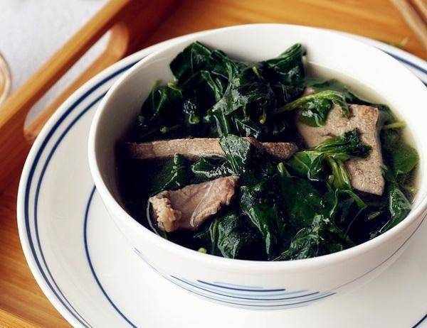 8.枸杞葉豬肝瘦肉湯就完成瞭。