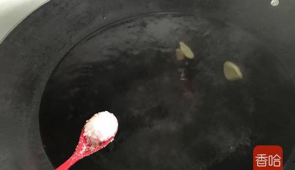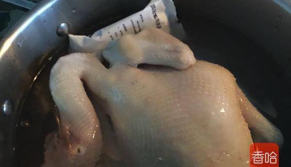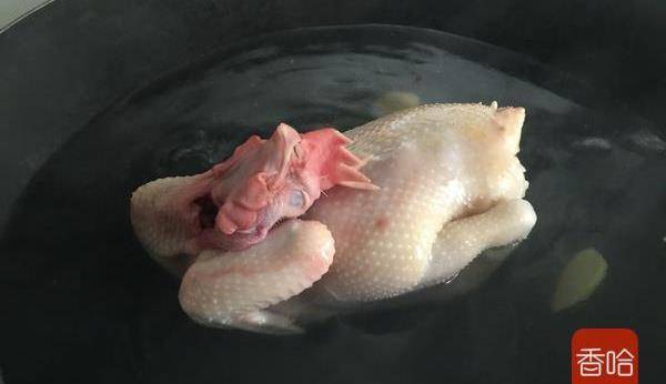 2.鍋裡燒開水後把薑片放進去再放點鹽,這樣煮出來的雞特別甜。