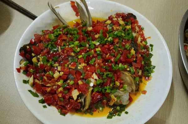 開胃的剁椒魚頭,不是罐頭辣椒,是叔叔自己剁的辣椒,魚鮮色美,味道一流。