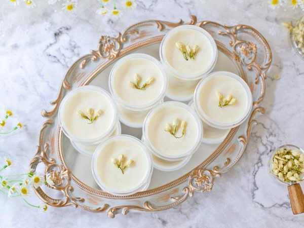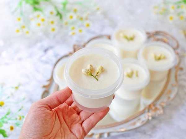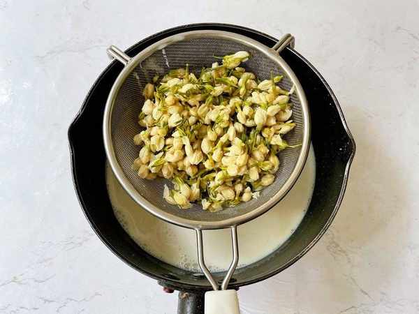 2、牛奶+茉莉花拌勻