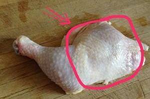 圈出來的部分就是雞上腿肉,這個部分細嫩多汁,炒出來最好吃