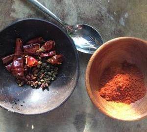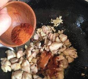 辣椒面兒主要是為瞭讓菜色澤紅亮,我這回買的質量不太好,不紅,就加瞭一半兒的甜紅椒粉,這樣炒出來也不至於太辣