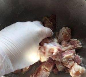 玉米淀粉約兩勺,按照肉的濕潤程度添加,上漿即可