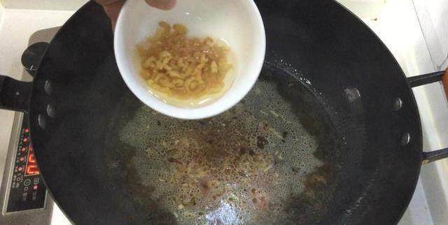 6加入少量生抽爆鍋,加入溫水,下入清洗的海米。