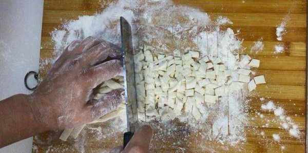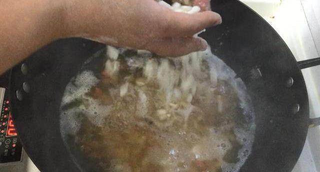 7湯煮沸騰以後加入小面塊煮沸騰。