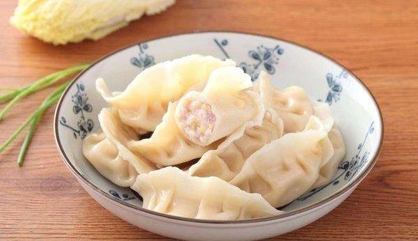 6.清水入鍋,大火煮沸,放入水餃,攪拌防止粘連,大火煮熟,加點涼水,再次煮沸。