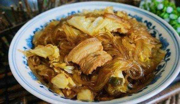 4.放入大白菜倒入醬油翻炒均勻,放入粉條;倒入適量清水。