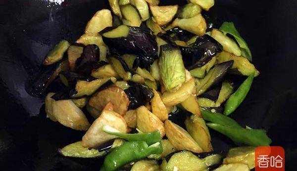 9.將三種蔬菜放入煸炒片刻。
