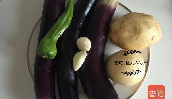 茄子3個、土豆2個、大蒜兩瓣、辣椒一個、玉米油適量、鹽適量、生抽少許、蠔油少許、花椒粉少許