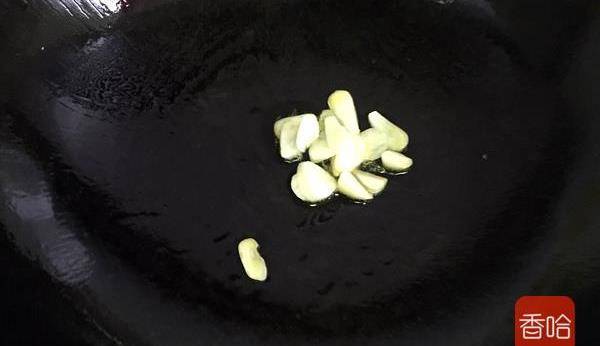 8.鍋內留底油,放入蒜片爆香。