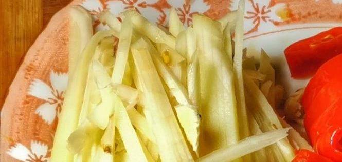 切配:魚去內臟,洗凈,切成5厘米左右的塊,用料酒,40克鹽,胡椒, 老薑4片,蔥1根,檸檬汁,放入冷藏室醃制15分鐘。煮魚前,用水沖洗幹凈。子薑切絲,大蔥切寸段,大蒜,老薑2片,泡薑,二斤條,野山椒切末,燈籠椒切碎片。