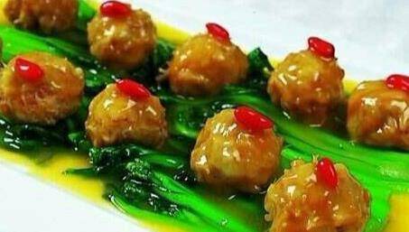 2、將五絲拌勻後放盤內,用水將薯泥擠成乒乓球大的薯圓,放在五絲上來回滾動,使其粘滿五絲,放在盤裡蒸5分鐘取出。