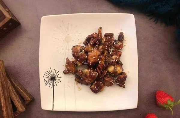 1.豬排骨一根,砍小塊,清水清洗一遍,然後再浸泡二十分鐘左右,去除血水;再瀝幹水分;2.取一小塊生薑洗凈去皮切薄片;3.提前調好酸甜醬汁:一勺生抽,兩勺料酒,三勺米醋,四勺白糖,攪拌均勻;4.鍋內熱油,放入生薑片,爆香;再倒入排骨,翻炒;5.排骨炒至幹水,出香味;表面變金黃;6.再倒入調好的醬汁,繼續翻炒;7.待排骨基本收汁,就可以關火啦~出鍋裝盤,撒上白芝麻,即可