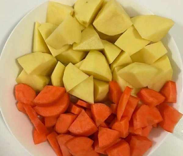 6.牛肉燉八成熟時倒入土豆和胡蘿卜在燉10分鐘左右即可。