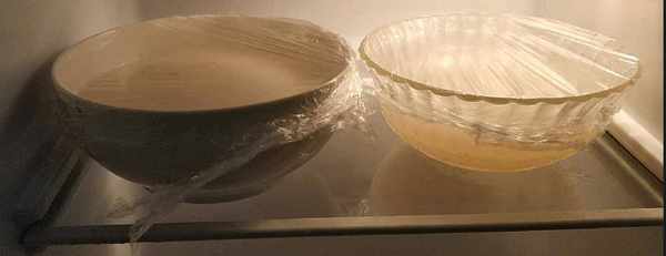 5、把豬皮鏟子壓成泥(也可以用攪拌機攪一下),和湯一起過濾到盆裡,把過濾出來的湯裝好,加入白糖攪拌均勻,放入冰箱裡冷藏4小時左右;