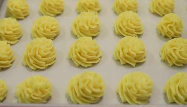 10.按照這個方法把所有的曲奇都擠到烤盤裡面。
