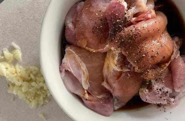 1、先教你們醃肉片,裡脊肉或瘦肉都可以,肉片先用一點小蘇打粉加開水泡五分鐘。之後撈起來後,蒜末跟薄鹽醬油兩湯匙、白胡椒粉些許、太白粉一湯匙攪拌放置三分鐘後,就可以下鍋煎瞭。