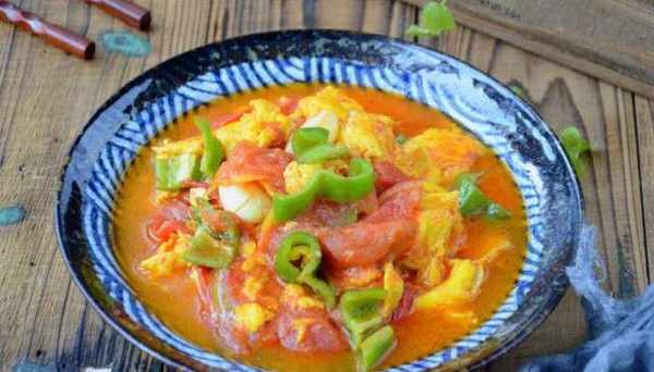 材料:番茄2個、雞蛋2個、青椒1個、大蒜3瓣、鹽4克、料酒少許、糖15克