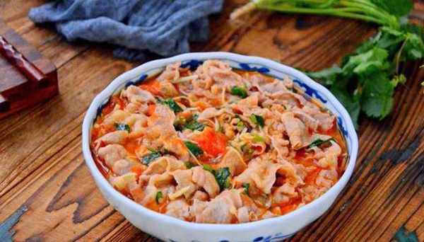 材料:番茄2個、肥牛卷150克、金針菇200克、香菜1根、大蒜頭2瓣、鹽3克、料酒1湯匙、生薑1片、糖10克