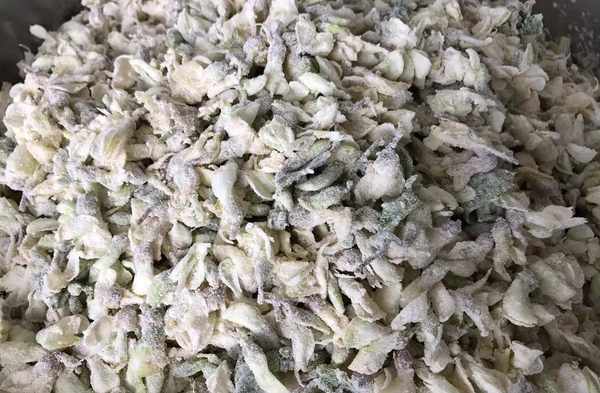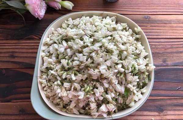 1、清洗幹凈的洋槐花一定用手攥幹水分,這樣蒸出來的槐花不濕黏。