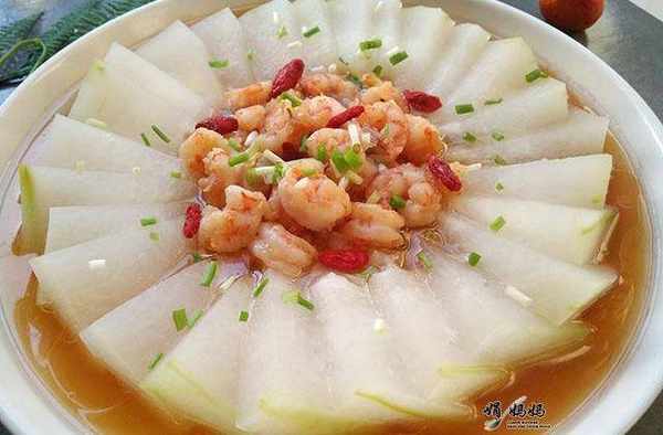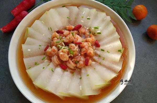 很多餐館裡一味地追求口感和賣相,做出來的食物油重鹽也多,吃著吃著體重就上來瞭。所以我們在傢就經常做些蒸菜吃,蒸菜吃的是食物的原汁原味,少油也少鹽,吃著比較健康。我傢最常做的一道蒸菜就是冬瓜蒸蝦仁。