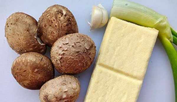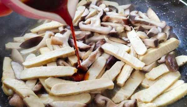 準備食材:新鮮香菇5朵,豆幹3片,蒜3瓣,蔥1棵,植物油、食鹽、十三香、生抽、老抽、雞精適量。