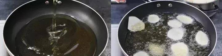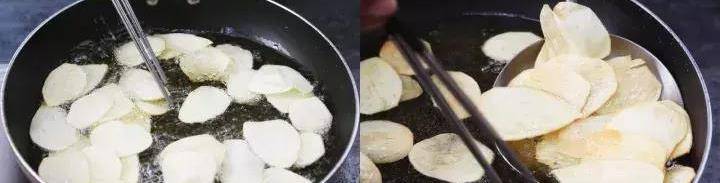 4、熱鍋倒入適量玉米油,慈菇一片一片放入鍋中。