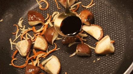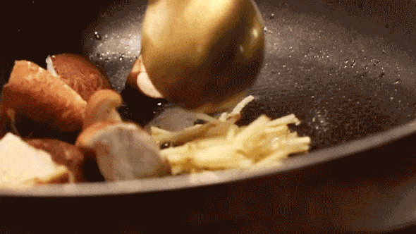 5、熱鍋起油,下入生薑炒香,放入香菇和陳皮。