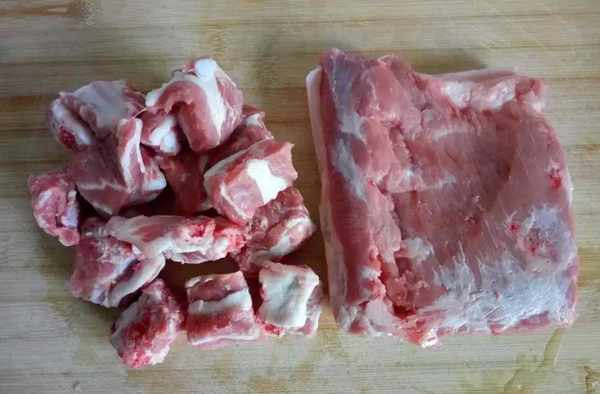 5、排骨和五花肉塊煮掉血水、瀝盡雜質。