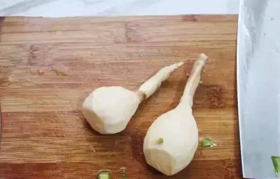 1、慈菇洗凈兩頭去蒂,用刀削去皮。