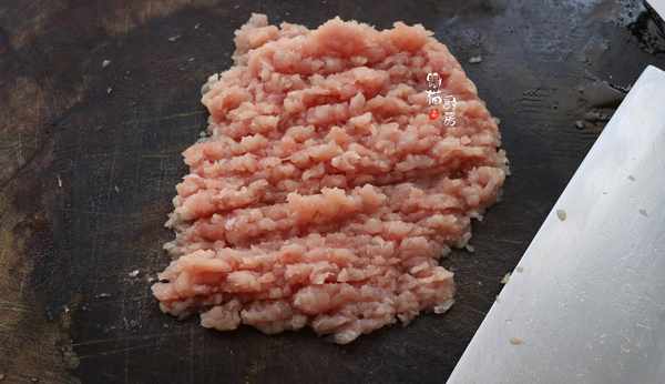 3.瘦肉2-3兩左右(1人份),把瘦肉剁成肉末肉泥,瘦肉(裡脊肉部分)油脂少,也是廣東人最喜歡用來燉湯的豬肉部分。