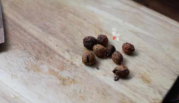 2.春砂仁是幹制果品,用刀背把它們拍扁。