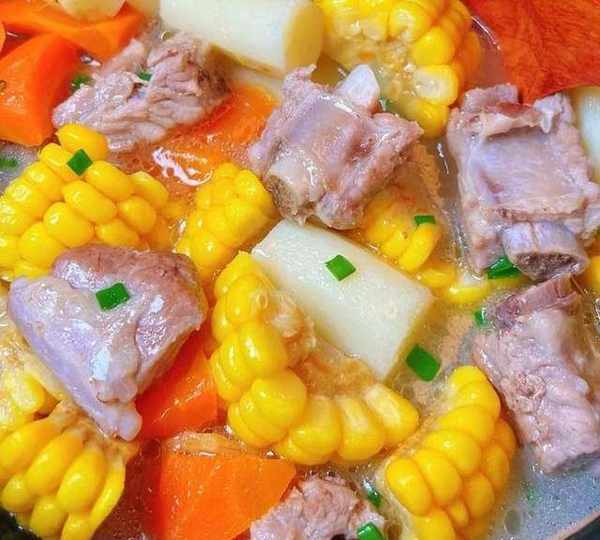 (3)加入玉米燉煮20分鐘後放入山藥、胡蘿卜繼續燉煮20分鐘;