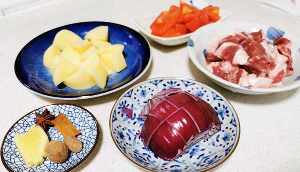 食材:牛腩500g,番茄2個,土豆1個,洋蔥1個