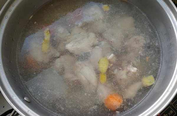 把炒過的雞塊放入正在煮的水裡,中火煮