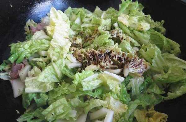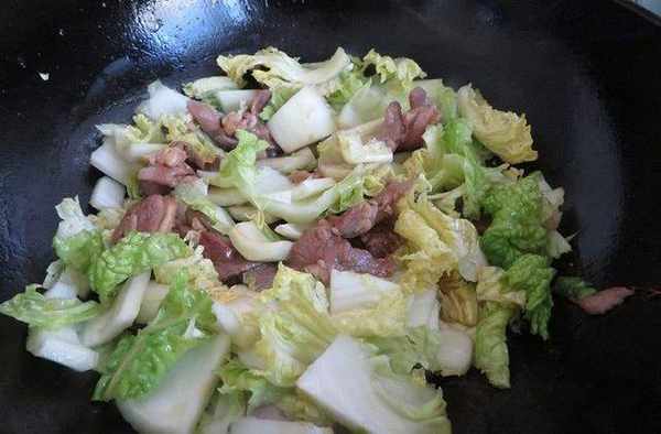 7、倒入白菜翻炒均勻