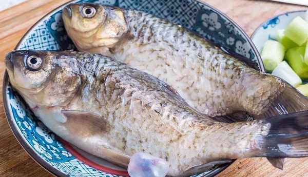 新鮮鯽魚去除魚鱗、魚腮、魚的內臟後洗凈幹凈;