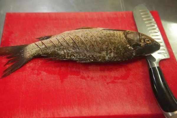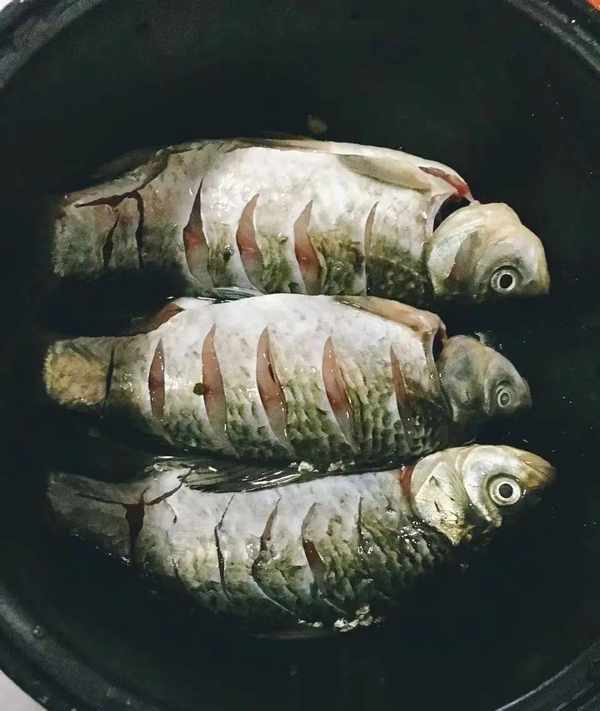 鯽魚清洗幹凈,要把魚肚內壁粘附著的黑色薄膜清理幹凈,否則魚湯會很腥,黑色薄膜用小刀輕輕刮掉即可。清洗幹凈後,不粘鍋加熱,倒兩茶匙茶油,加少許薑片,然後把鯽魚放入鍋內小火把兩面煎至微黃。起鍋燒油,下入鯽魚小火煎至兩面金黃。加入薑片和一壺開水。