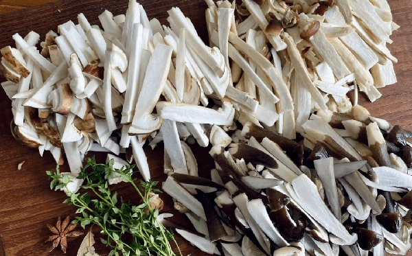 豆腐切塊,所有蘑菇洗幹凈切好備用。薑切片,蔥切成蔥花。