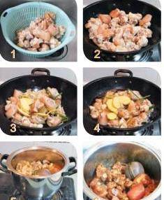 材料:豬腳、生抽、米酒、老抽、冰糖、薑、香蔥、大蒜、植物油。