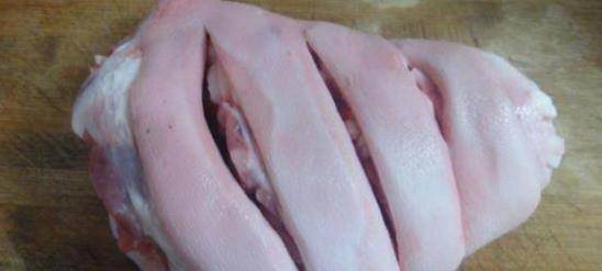 第一步:先把豬蹄(其實是蹄膀,豬蹄的最上部,我們這裡都習慣叫豬蹄!)沖洗幹凈,用刀劃上幾道口子,便於入味。