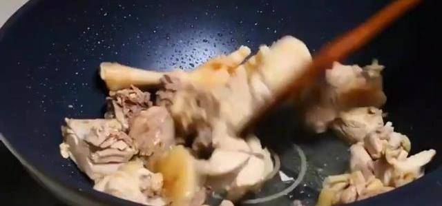 焯水的目的是為瞭去掉血水和雜質,撈出過涼水,這樣做出的雞塊更緊致,口感會更好。起鍋加油,油溫5成熱,放入雞塊煸炒,雞塊煸幹水分,炒至表皮微微發黃,倒入薑片和蒜段,繼續翻炒,激發出蔥段和薑片的香味,然後關火。