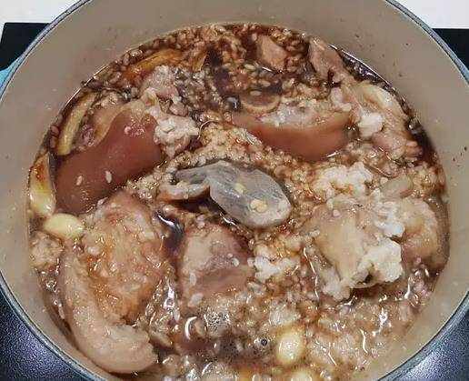 06.加入甜酒釀、香料後,加200ml水至淹過食材。